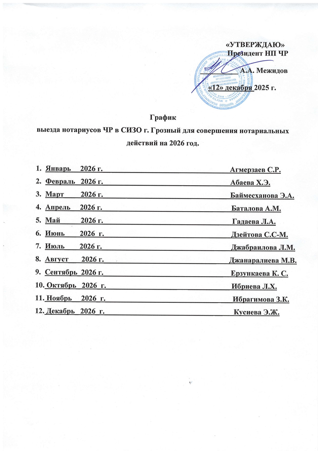 График выезда нотариусов ЧР в СИЗО на 2026 г.