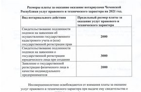 Размеры платы за оказание оказание нотариусами Чеченской Республики у…