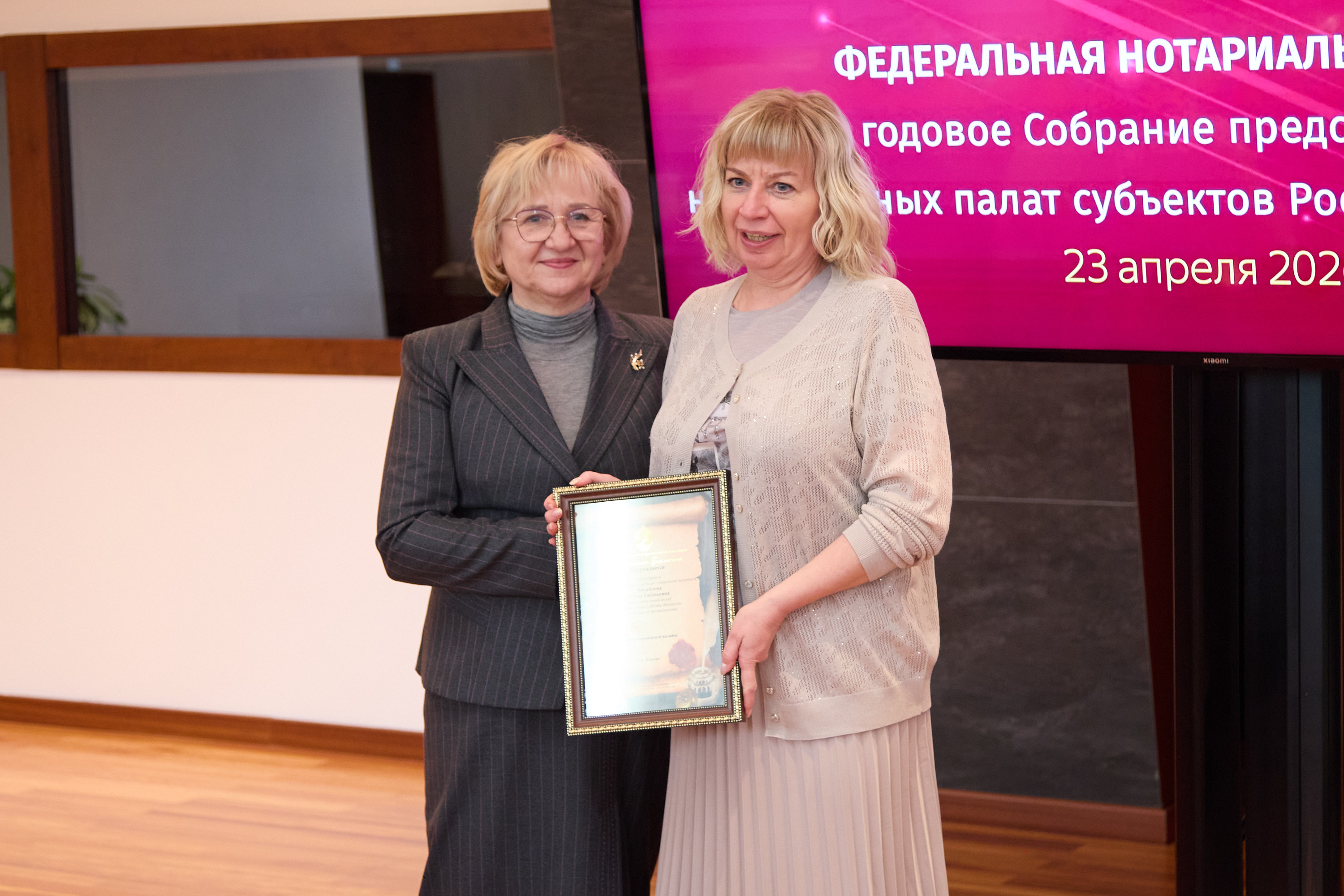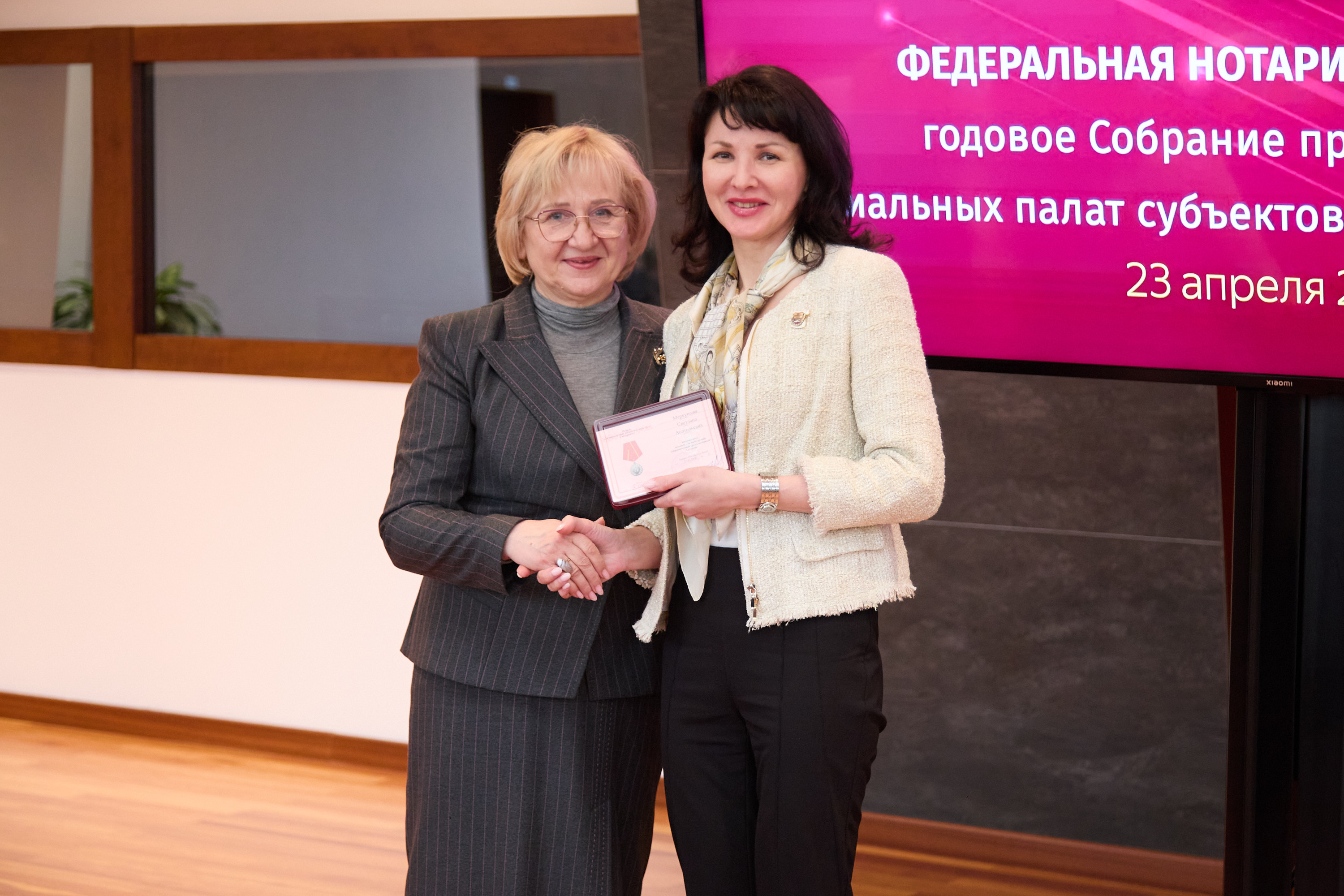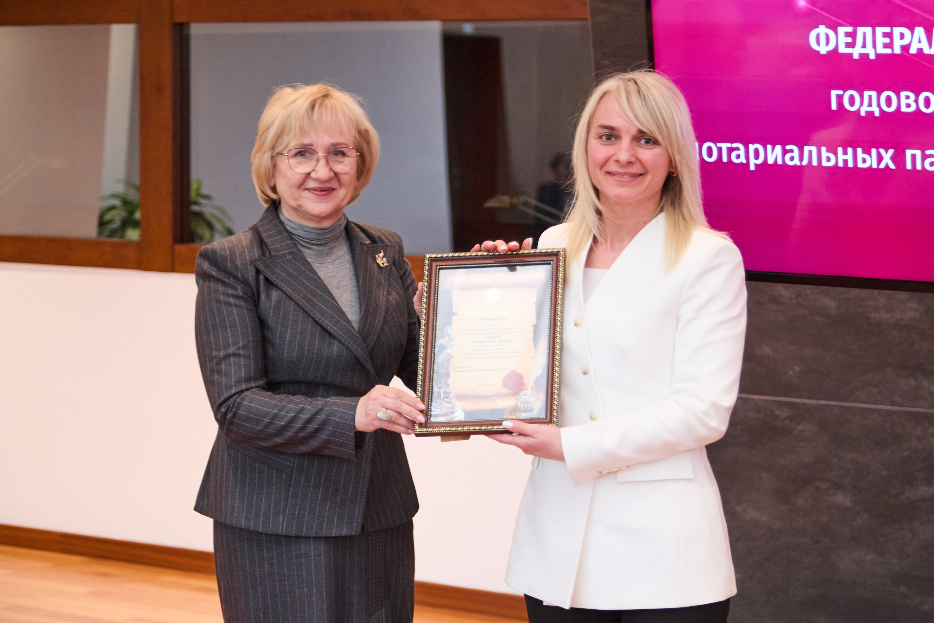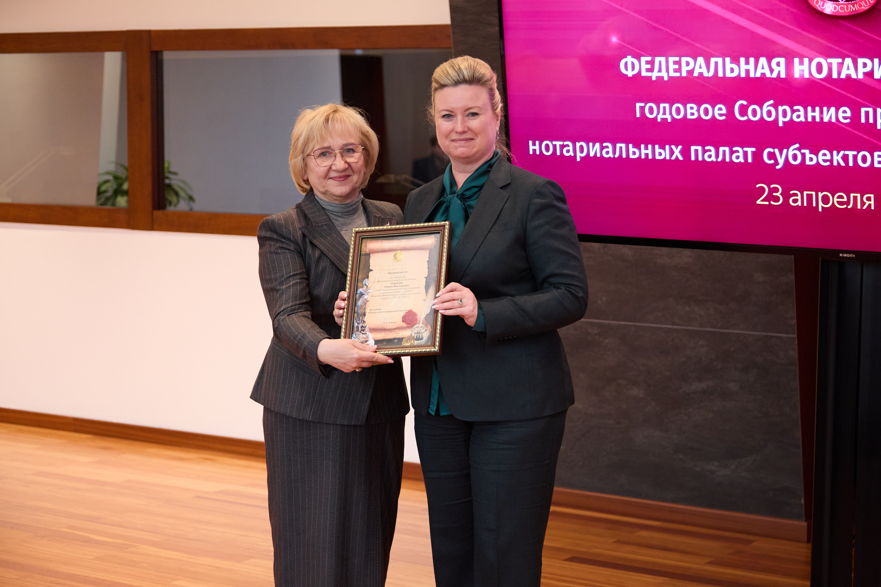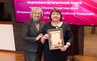 Медалью Юрия Иутина «За безупречное служение и верность профессии» были награждены президент Приморской краевой нотариальной палаты Наталья Егорова, президент Брянской областной нотариальной палаты Валентина Савельева.
