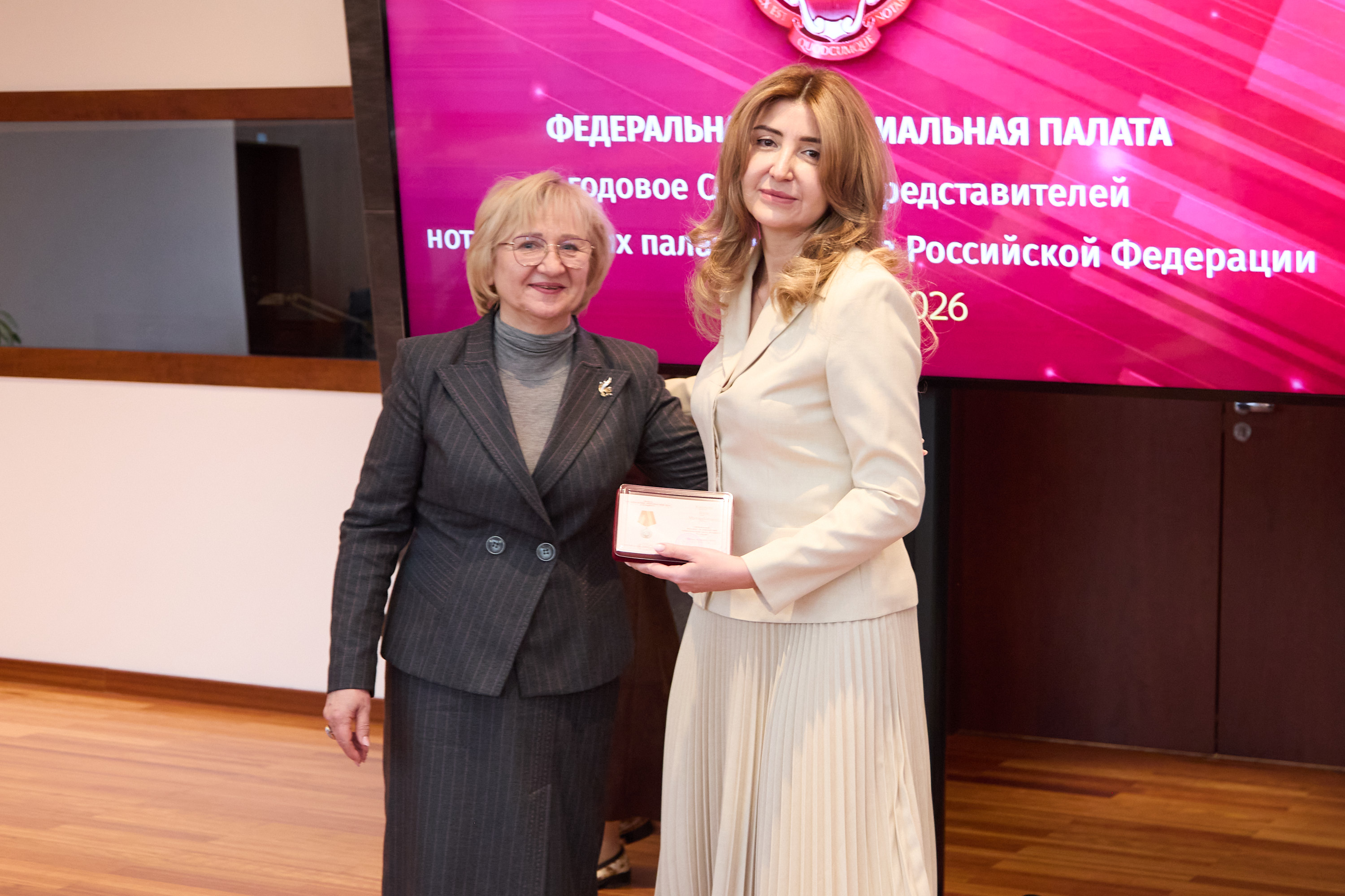 Медалью «За многолетний добросовестный труд в нотариате» 2 степени были награждены президент Нотариальной палаты Республики Северная Осетия-Алания Бэла Кисиева и президент Нижегородской областной нотариальной палаты Кирилл Лазорин.